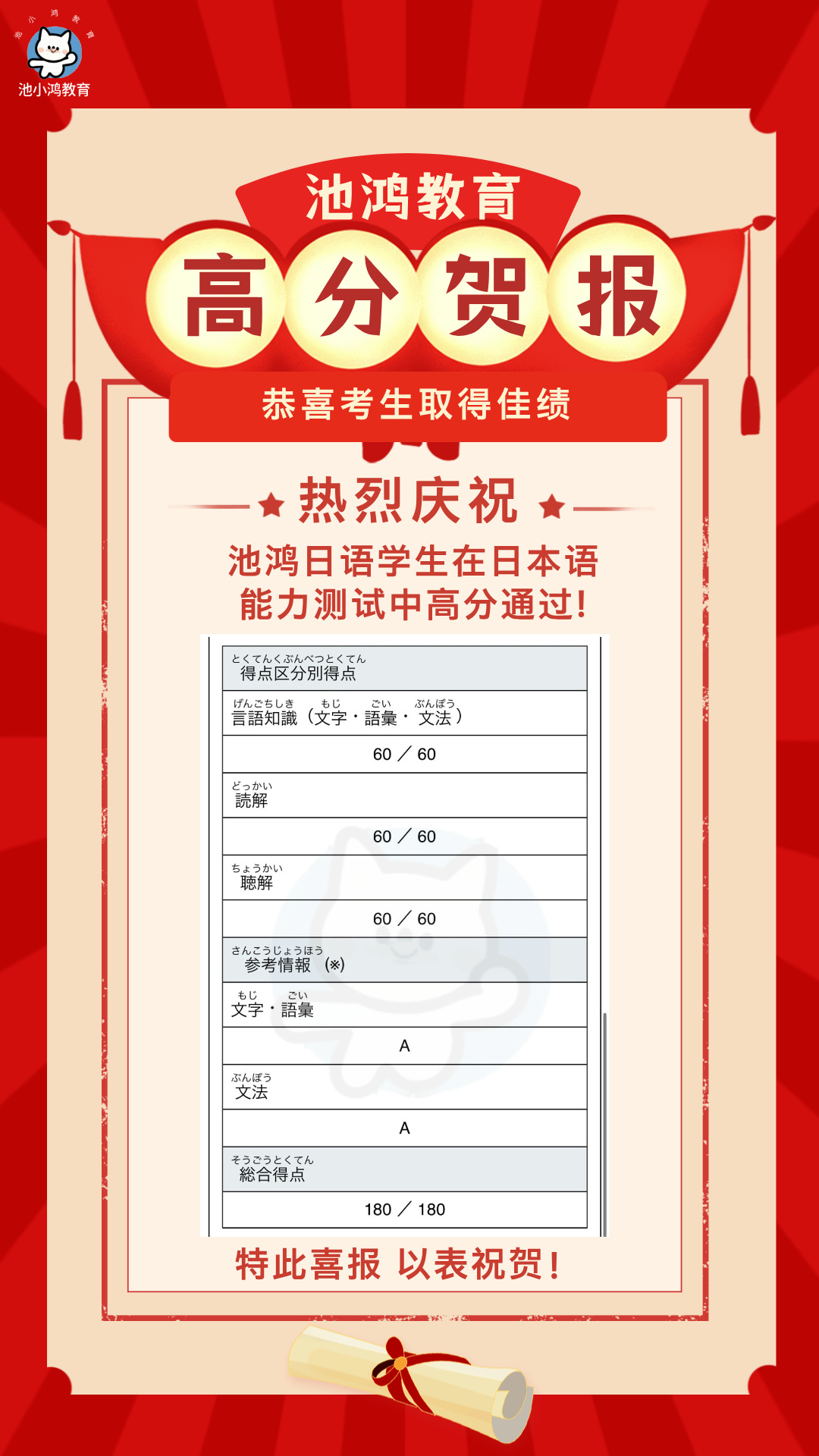 日语各阶段学员所得成绩展示