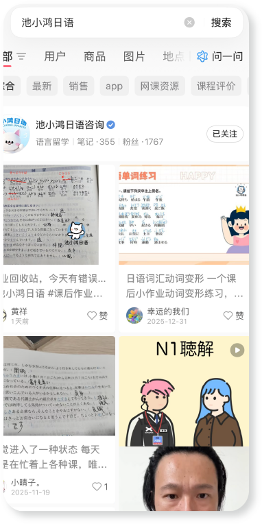 在池小鸿日语“教学-巩固-成长”的全周期服务体系支撑下,学员最终实现的是从“学会知识点”到“掌握学习能力”的质变。